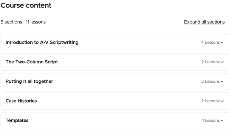 5 chapters, 11 lessons, sample scripts & videos